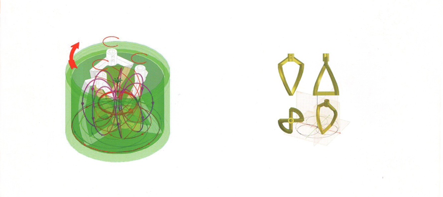 合理的流场设计是决定搅拌设备搅拌结果的要点。为了达到用户生产工艺多组分、多配方的需求,以及对物料粘度的流动性的特点,将搅拌流场设计成沿公转方向的螺旋式推进湍流流场。这种流场可以使搅拌混合与分散混合在相匹配的公转及自转速度下,建立起稳定的物料三维湍流,进而达到混合要求。